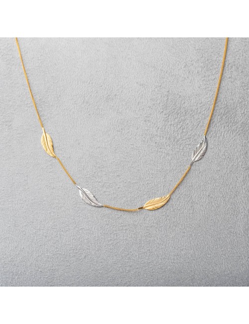 Un souffle de liberté sculpté dans l’or. Ce superbe collier en Or 9 carats met en valeur quatre grandes plumes finement travaillées, fixées sur une chaîne gourmette au tombé élégant. Chacune, façonnée à la main dans un or poli, dévoile des détails ciselés avec minutie, reflétant la lumière à chaque mouvement. Une pièce audacieuse, pour celles qui aiment les bijoux de caractère.