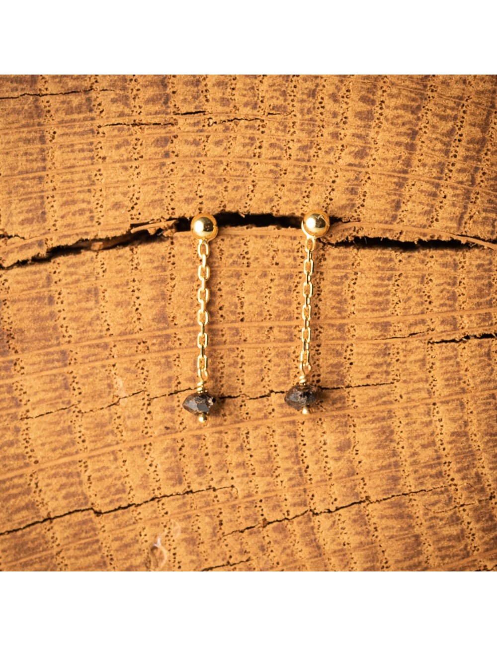Boucles d'oreilles pendant single, diamants noirs, en Or jaune ou Or blanc 18 carats