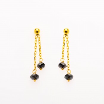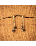 Boucles d'oreilles 2 pendants diamants noirs Or jaune 18 carats