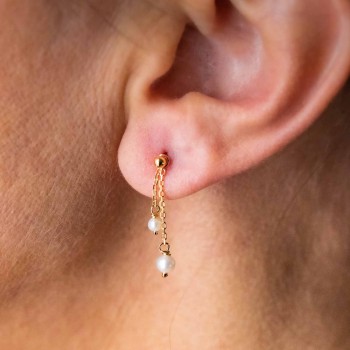 Boucles d'oreilles enfants 3 plumes pendantes en Or jaune ou Or blanc 9 carats
