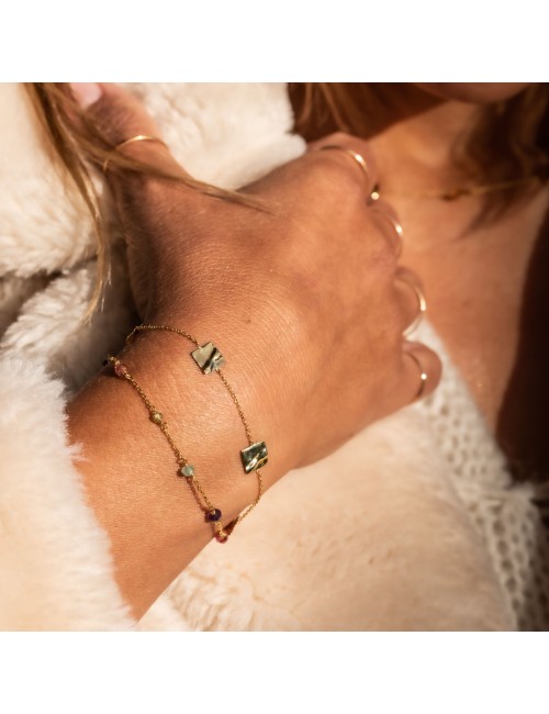 Bracelet en Or orné de sublimes pierres précieuses : tourmalines roses, tourmalines vertes, améthystes, et péridots. Une création unique qui mêle la beauté de l'Or poli à celles des pierres précieuses colorées.