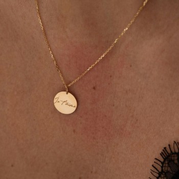 Pendentif "Je t'aime" en Or 18 carats (jaune, rose ou blanc), disponible avec 2 styles de gravures : écriture clavier ou manuscrite (ici manuscrite). Un message d'amour sublime, intemporel et délicatement personnalisé à offrir.