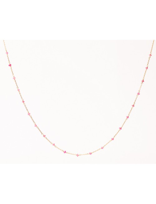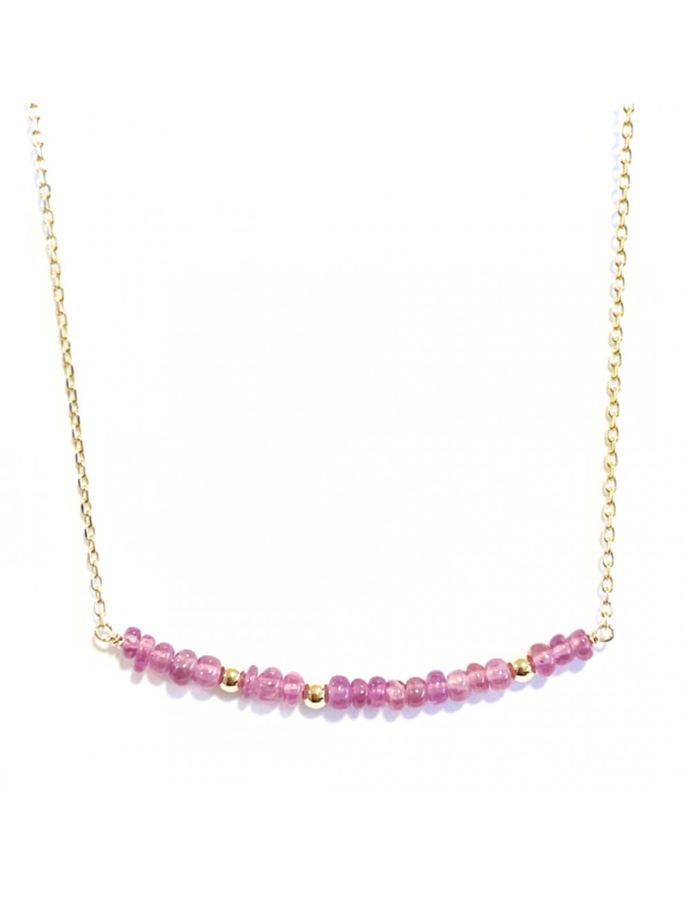 Collier en Or 18 carats orné de 16 Rubis délicatement suspendues sur un fil d'Or. Une création qui mêle la chaleur rosé du Rubis à l'éclat de l'Or.