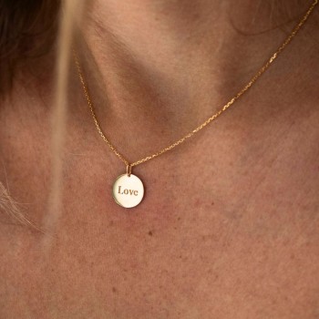 Pendentif "Love" en Or 18 carats (jaune, rose ou blanc) en écriture clavier (existe en écriture manuscrite). Un message d'amour sublime, intemporel et délicatement personnalisé à offrir.
