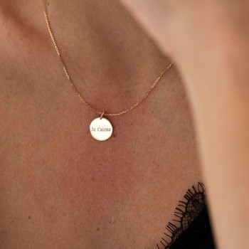 Pendentif "Je t'aime" en Or 18 carats (jaune, rose ou blanc), disponible avec 2 styles de gravures : écriture clavier ou manuscrite. Un message d'amour sublime, intemporel et délicatement personnalisé à offrir.