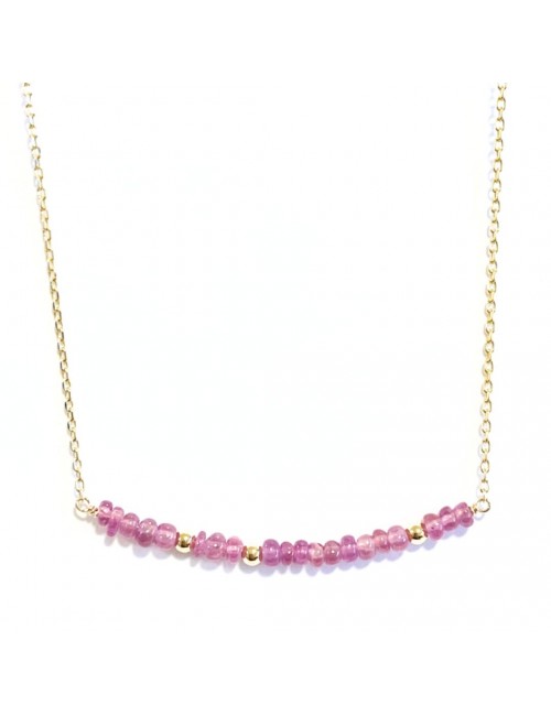 Collier en Or 18 carats orné d'une vingtaine de Rubis et de 3 boules d'Or. Une création unique qui allie la beauté des pierres précieuses à l'Or.