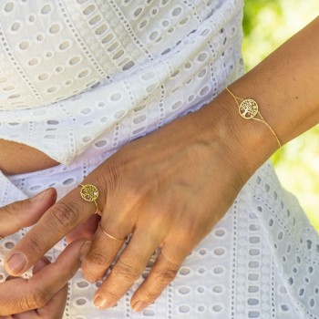 Bracelet Arbre de vie en Or 18 carats. Sculpté dans un Or brillant et lumineux, l’arbre déploie ses branches. Un symbole intemporel d’équilibre et de prospérité, il représente l’harmonie parfaite entre la terre et l’humanité, tout en incarnant force et sagesse.