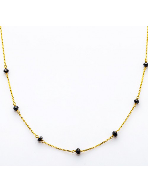 Somptueux collier en Or Jaune 18 carats orné de plusieurs Diamants noirs suspendus sur un fil d'Or. Une création qui incarne l'alliance parfaite entre l'élégance mystérieuse et le luxe intemporel.