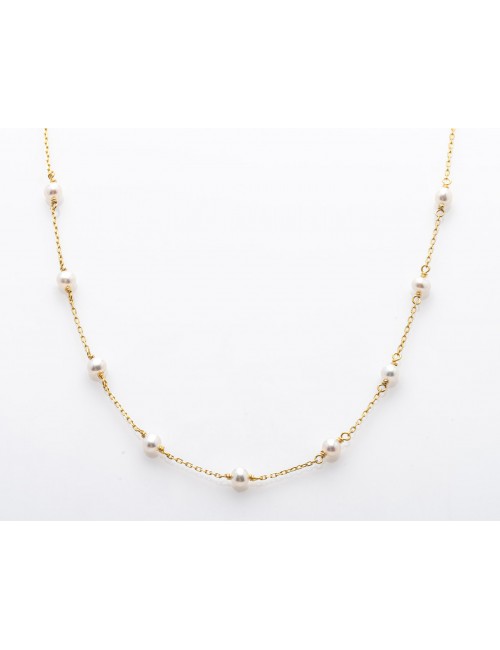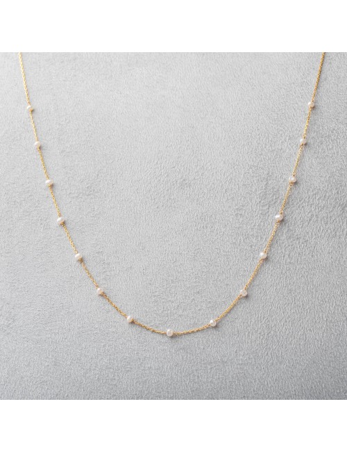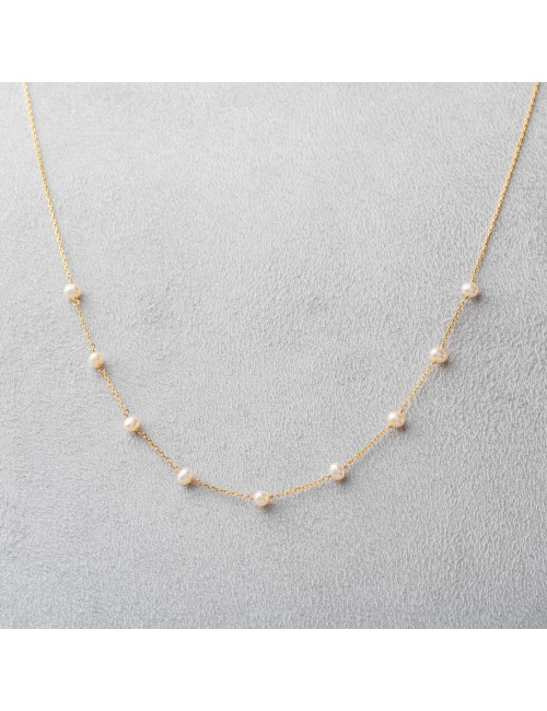 Ce collier en Or 18 carats s’illumine de petites perles d’eau douce, disposées avec subtilité le long de la chaîne. Leur éclat nacré apporte une touche de douceur et de féminité, parfaitement équilibrée par la chaleur de l’or. Un bijou discret et élégant, idéal pour un porté quotidien empreint de poésie.
