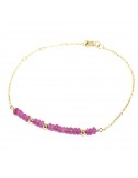 Magnifique bracelet en Or jaune 18 carats orné de petits Rubis séparés par des boules d'Or. Les rubis, avec leur couleur vibrante, sont le symbole de l’amour et de la passion. Leur éclat profond, mis en valeur par la brillance de l’or, apporte à votre poignet une touche de luxe et de caractère.