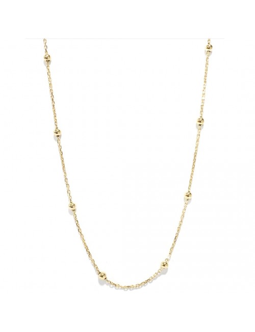 Collier en Or orné de 15 véritables boules en Or Jaune 18 carats, chacune espacée par une chaîne forçat limée. Une création réalisée à la main dans un Or poli et éclatant.