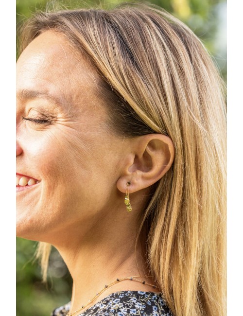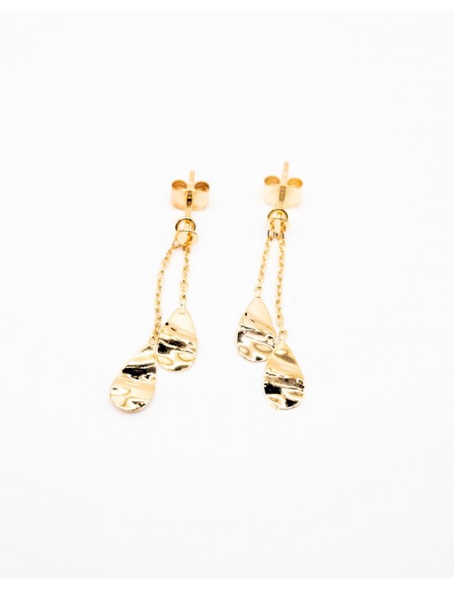 Boucles d'oreilles en forme de gouttelettes pendantes, réalisées en Or froissé. La texture froissée apporte une dimension unique aux gouttelettes, capturant la lumière et offrant un éclat tout en nuance.