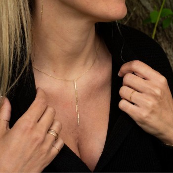 Ce collier en Y est orné de trois fils en Or 375/1000 à la texture grunge, façonnée à la main pour révéler un aspect volontairement rugueux, presque patiné par le temps. Chaque détail évoque la beauté de l’imparfait, comme un écho aux bijoux anciens chargés d’histoire. Une création singulière, idéale pour celles qui aiment les pièces de caractère au style intemporel.