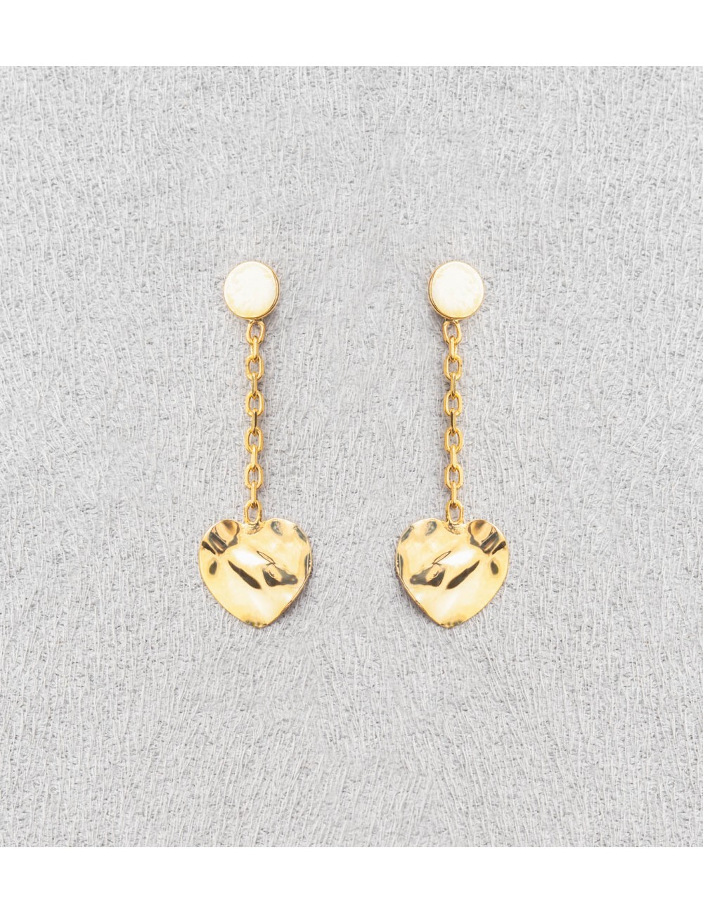 Au creux du lobe, un cercle d’or s’ancre avec discrétion, tel un point d’équilibre. De lui s’échappe une fine chaînette, délicate comme un fil d’instant suspendu. Tout au bout, un cœur froissé, façonné en Or 375/1000, semble battre au rythme des mouvements. Comme un murmure intime, il oscille doucement, messager silencieux de tendresse ou de passion. Ce bijou est une déclaration discrète, un éclat de sentiment qui brille au fil du jour.