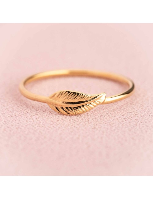 Jolie bague en or 9 carats, délicatement façonnée en forme de petite plume, alliant légèreté et élégance. Un design subtil et aérien qui évoque la liberté et la grâce, tout en apportant une touche de douceur.