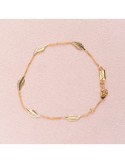 Ravissant bracelet pour enfant ou Bébé en Or jaune ou en Or blanc composées de 5 petites plumes et sublimera sans conteste le poignet des
